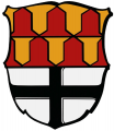 DE: Geteilt; oben in zwei Reihen Eisenhutfeh in Rot und Gold, unten in Silber ein schwarzes Tatzenkreuz.