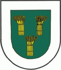 DE: Im grünen, silbern gesäumten Schild drei (2, 1) goldene Garben.