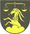 DE: In Schwarz golden aus einem Dreiberg wachsend ein Steinbock mit ausgeschlagener Zunge, überhöht von einer Waage.