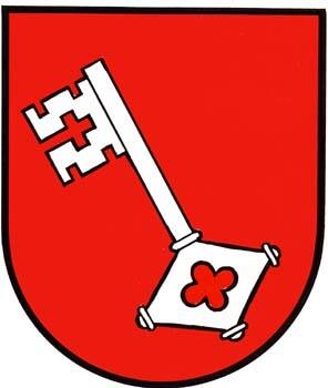 DE: Im roten Feld ein schräg rechts gelegter silberner Schlüssel.